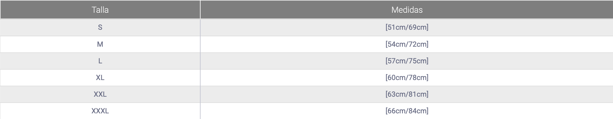 GUÍA DE TALLAS APROXIMADA: